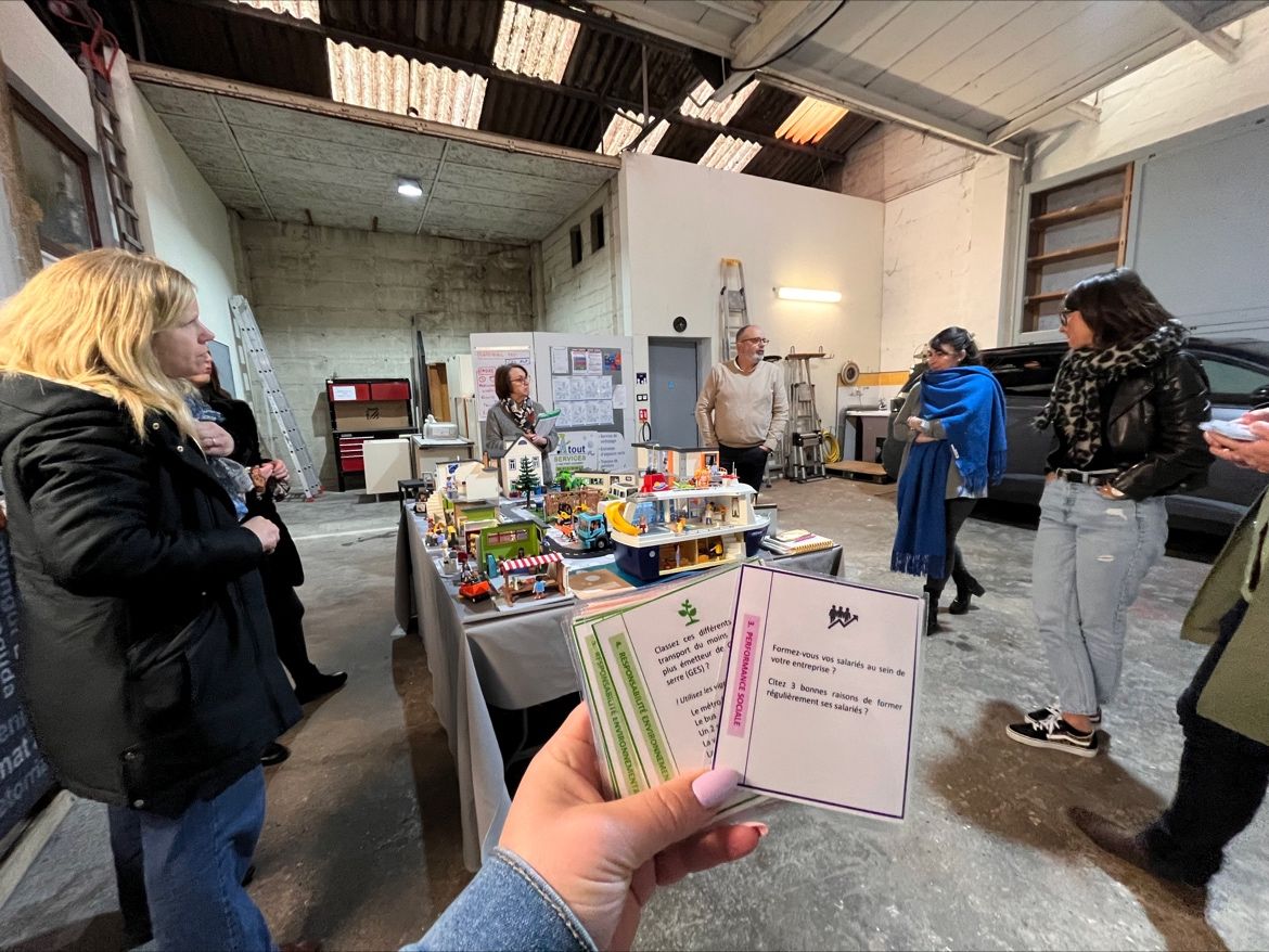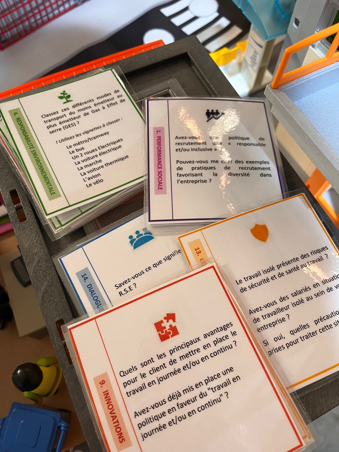 Le SAFEMOBILPRO est un dispositif d’accompagnement pour la transition écologique et l’amélioration des conditions de travail, pour les entreprises de propreté adhérentes au GEIQ PEP’S. Ce dispositif de 4 jours (demi-journée d’animation et demi-journée de prépa et analyse) comporte un jeu ludique (plateau avec des Playmobil ainsi qu’une échelle de progression), une réflexion de l’entreprise pour la mise en place d’un plan d’actions et l’argumentaire de l’entreprise envers ses clients.